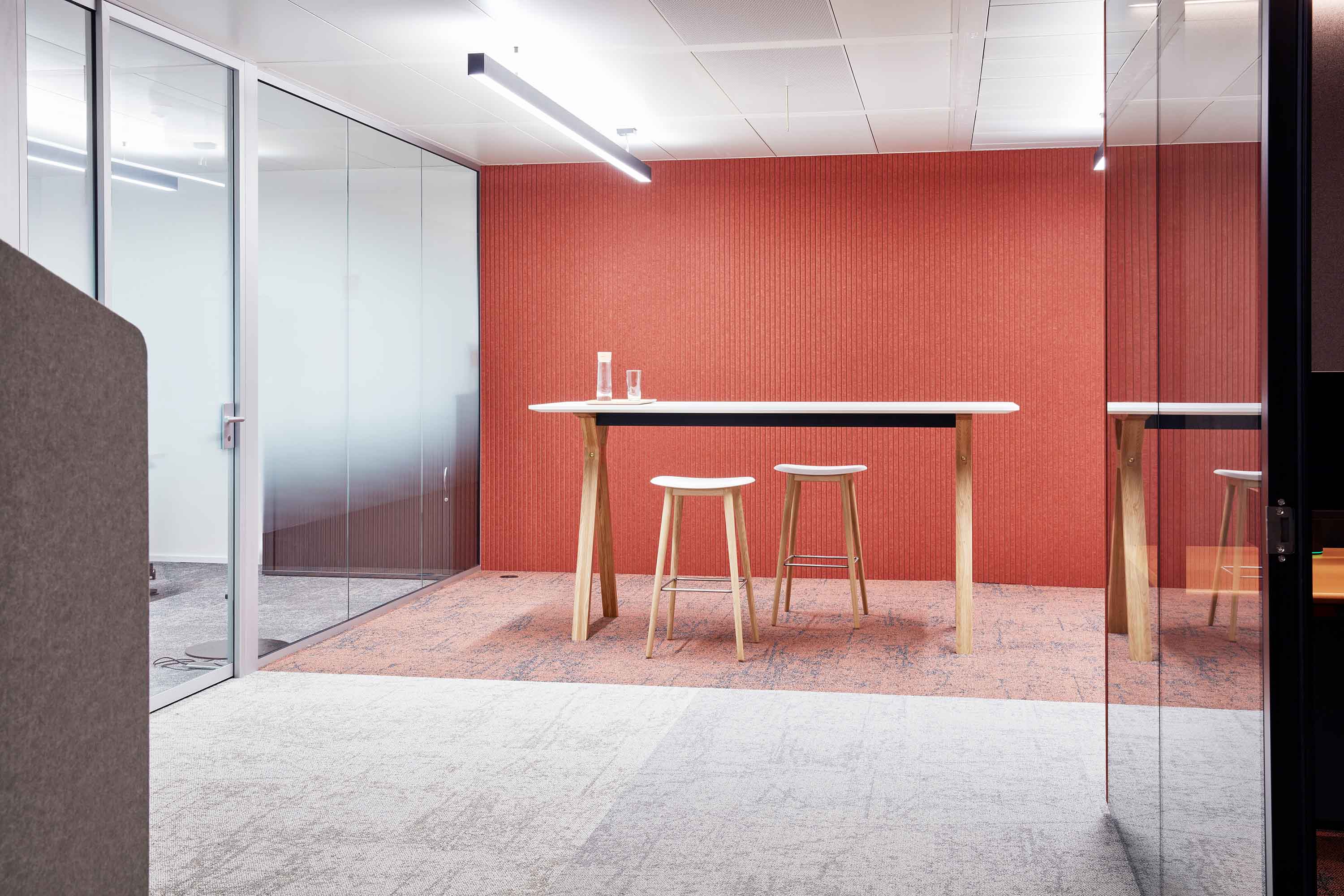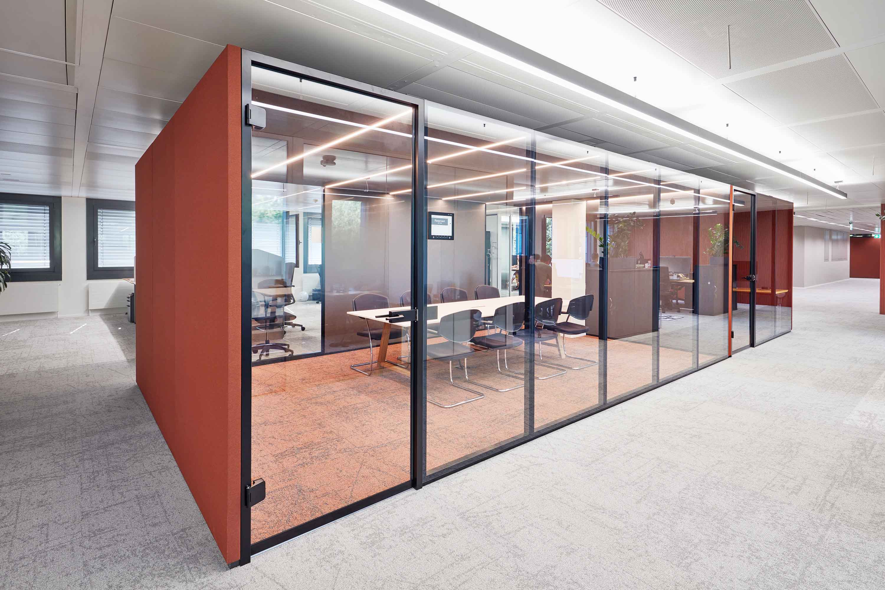 Innerhalb eines sehr sportlichen Zeitrahmens entwickelten die Spezialisten von Trispace ein Innenarchitekturkonzept, das der Kundin Genossenschaft GGA Maur eine grösstmögliche Flexibilität des Mieterausbaus erlaubt. In ehemaligen Büroflächen einer Bank wurden mithilfe von Raum-in-Raum-Lösungen Kollaborationsflächen in den offenen Arbeitsflächen realisiert. Die Gestaltung verbindet Elemente der Corporate Identity mit örtlichen Motiven, welche die lokale Verbundenheit betonen.