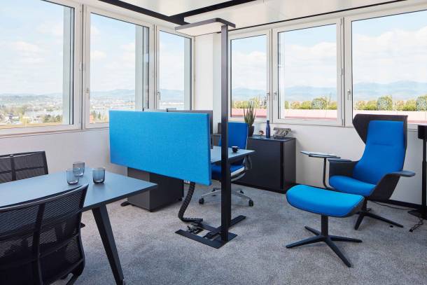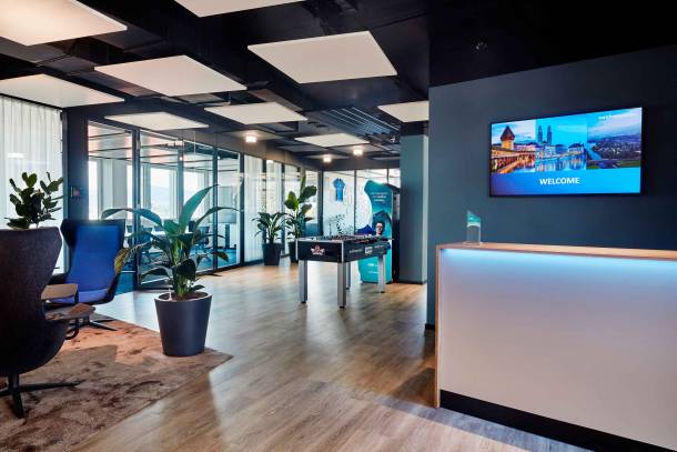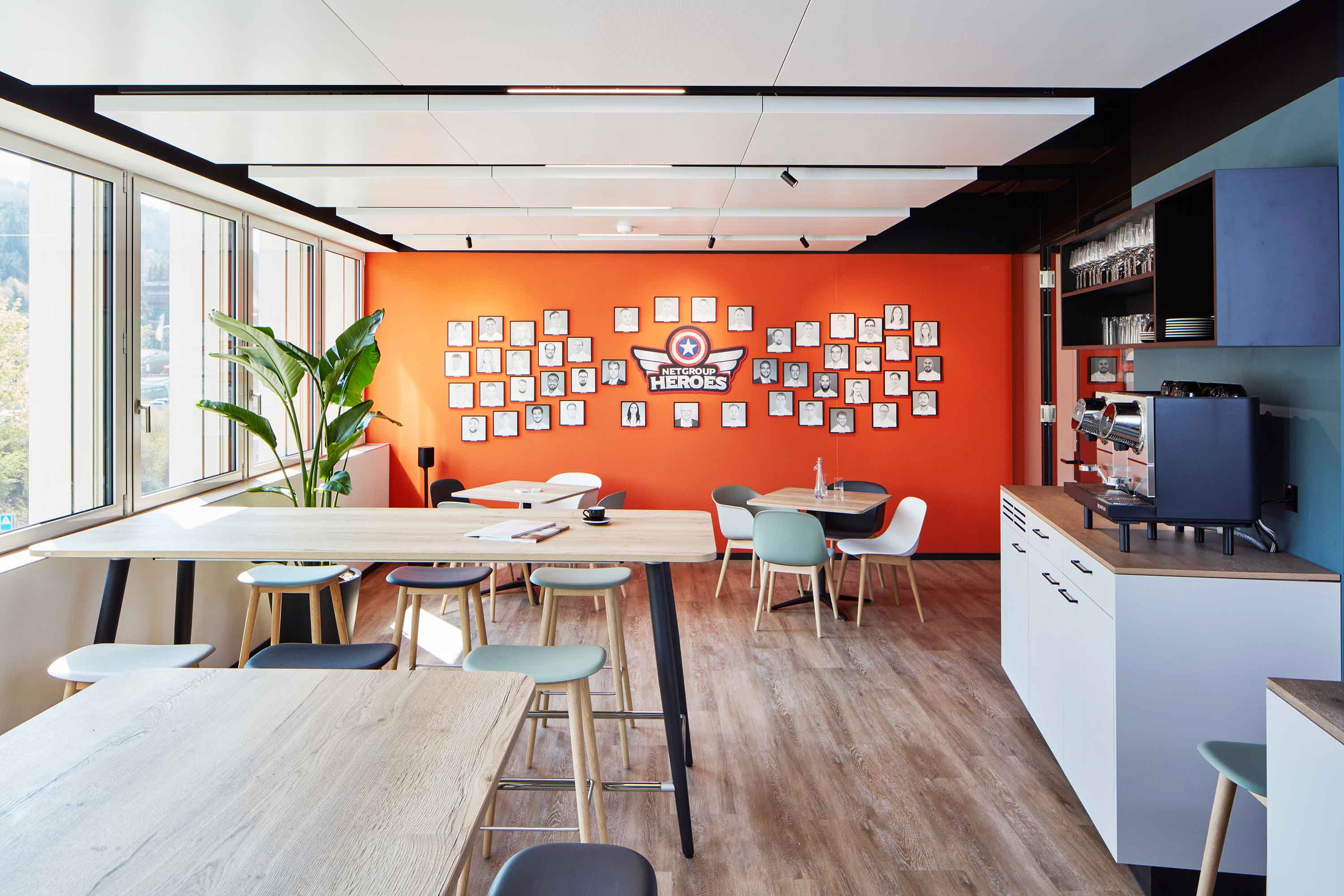 Nicht nur der schöne Blick auf den Zürichsee, sondern auch die Vielfalt an unterschiedlichen Zonen mit Tischtennis oder Tischfussball sowie die Cafeteria geben den Mitarbeitenden Gemeinschaftsflächen, die sie motivieren, in die Büros zu kommen.
