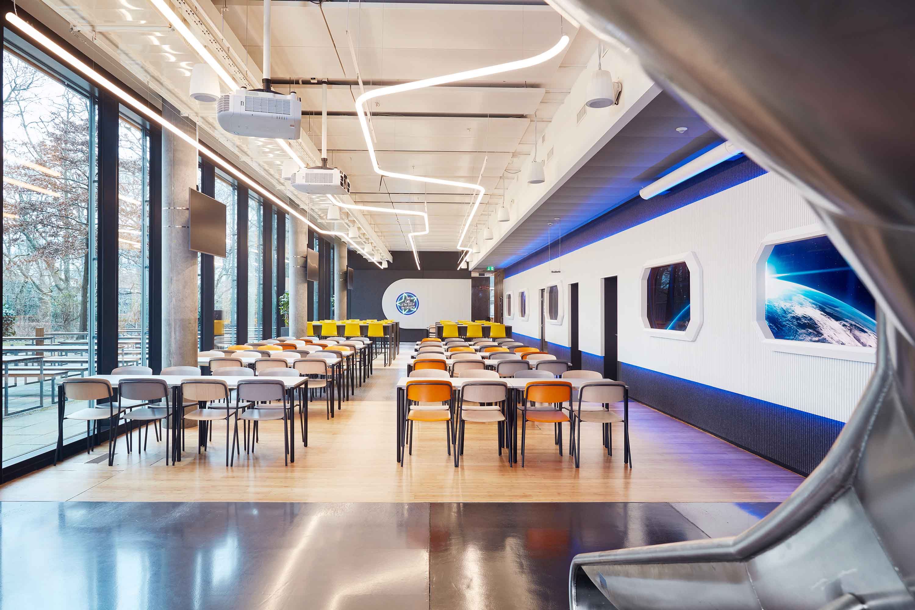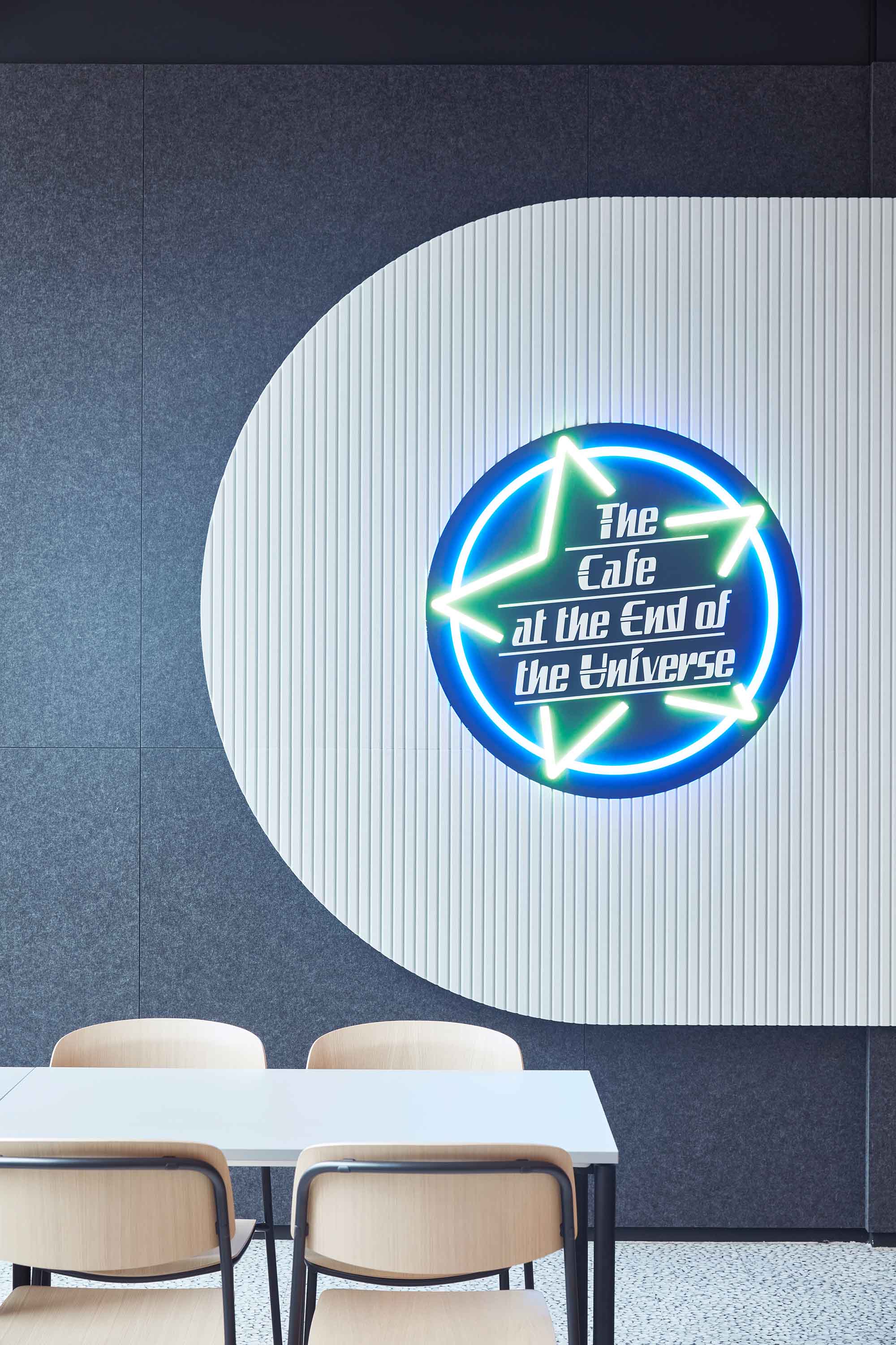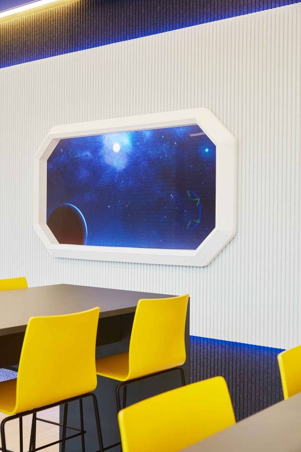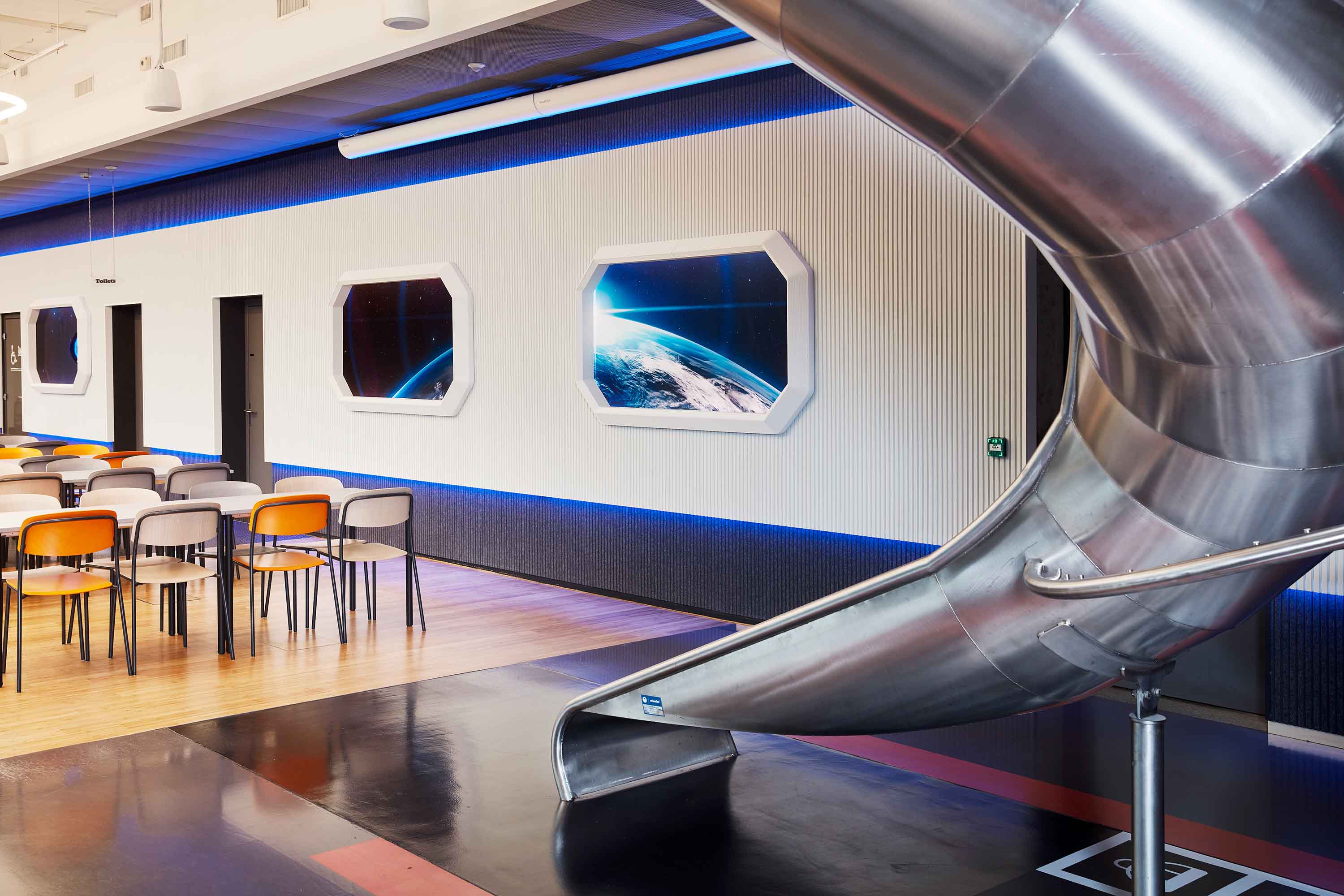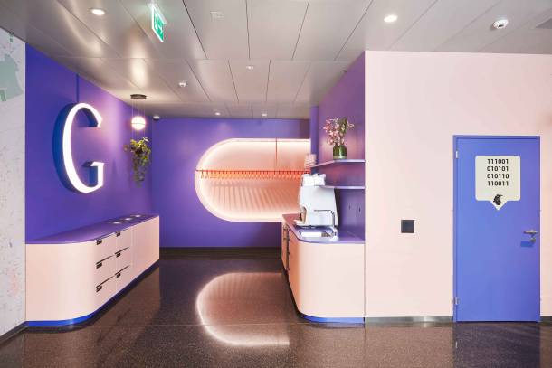 Die Neukonzeption der Cafeteria sah eine Verdoppelung der Nutzfläche sowie ein grosses Angebot an unterschiedlichen Sitzgelegenheiten vor. Weiter wurde das Look’n’Feel auf die überarbeiteten Branding-Guidelines angepasst. Je nach Raumkonzept wurde die Atmosphäre mithilfe von Farben, Materialien und Mobiliar individualisiert. Schlussendlich wurde dem Kunden eine farblich harmonische und akustisch perfekt abgestimmte Arbeitswelt übergeben.