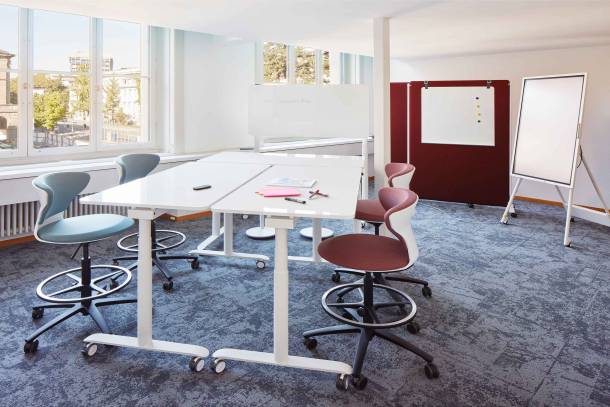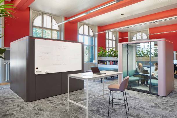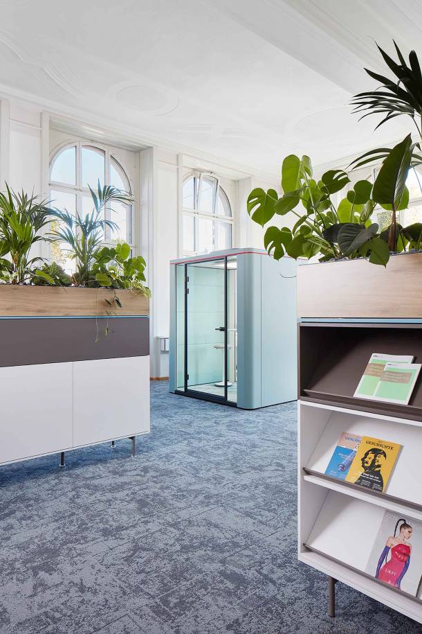 Nach einer intensiven Beratung und Planung zu Themen wie nutzerbasiertem Arbeiten, Kollaboration, Akustik und Raumatmosphäre sind Flächen entstanden, die neue Arbeitsmodelle zulassen und die Mitarbeitenden perfekt in ihrer täglichen Arbeit unterstützen.