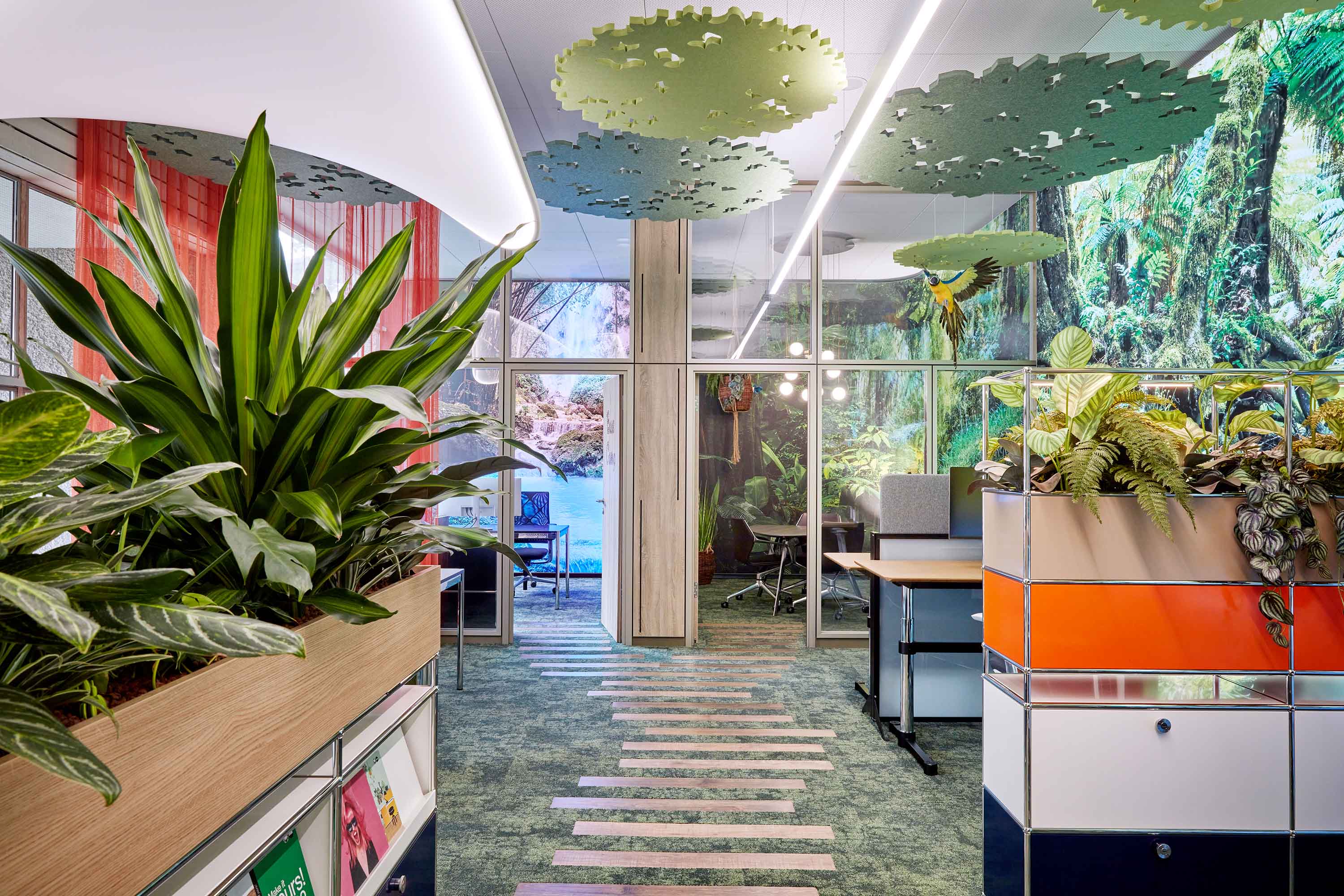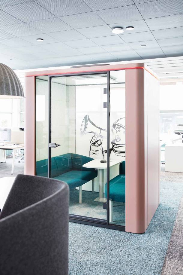 Der neue Hauptsitz von Trispace bietet ein völlig neues Kundenerlebnis. Es wurden inspirierende Mikroinfrastrukturen gebaut, die den Mitarbeitenden bislang nicht gekannte Möglichkeiten für das Activity-Based-Working geben. Ziel des neuen Living Showrooms ist es, die Arbeit von Trispace als Arbeitsplatzspezialist sichtbar zu machen. Nebst einer grossen Diversität an Gestaltungselementen wurden auch Themen wie Raumakustik, Technologie zum vernetzten Arbeiten oder der Umgang mit Licht in Arbeitswelten eindrücklich umgesetzt.