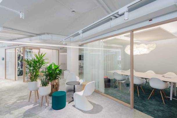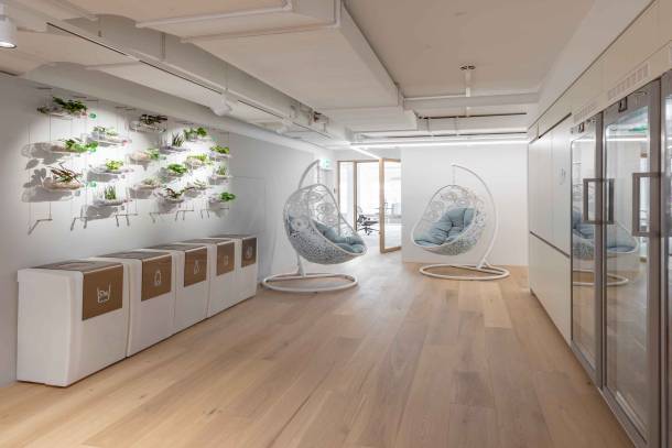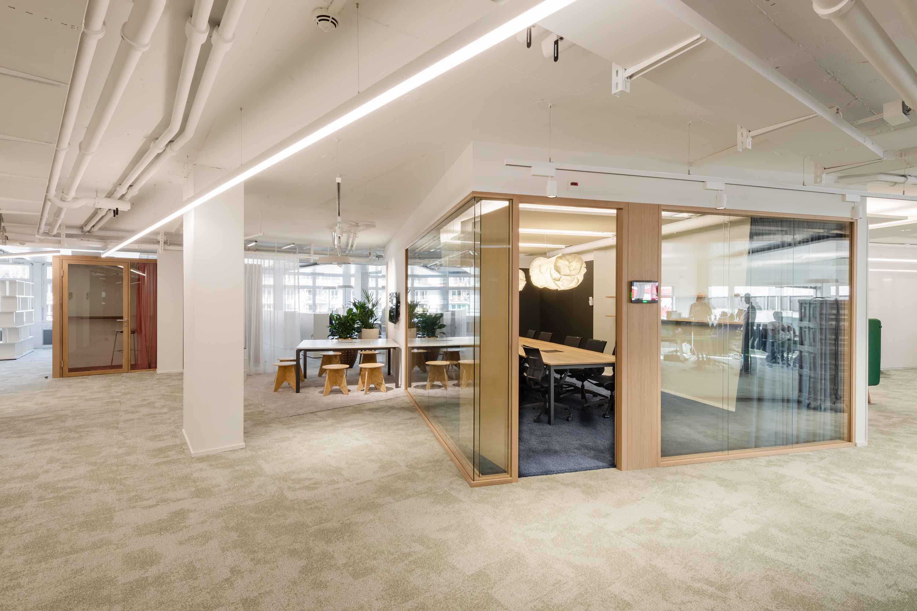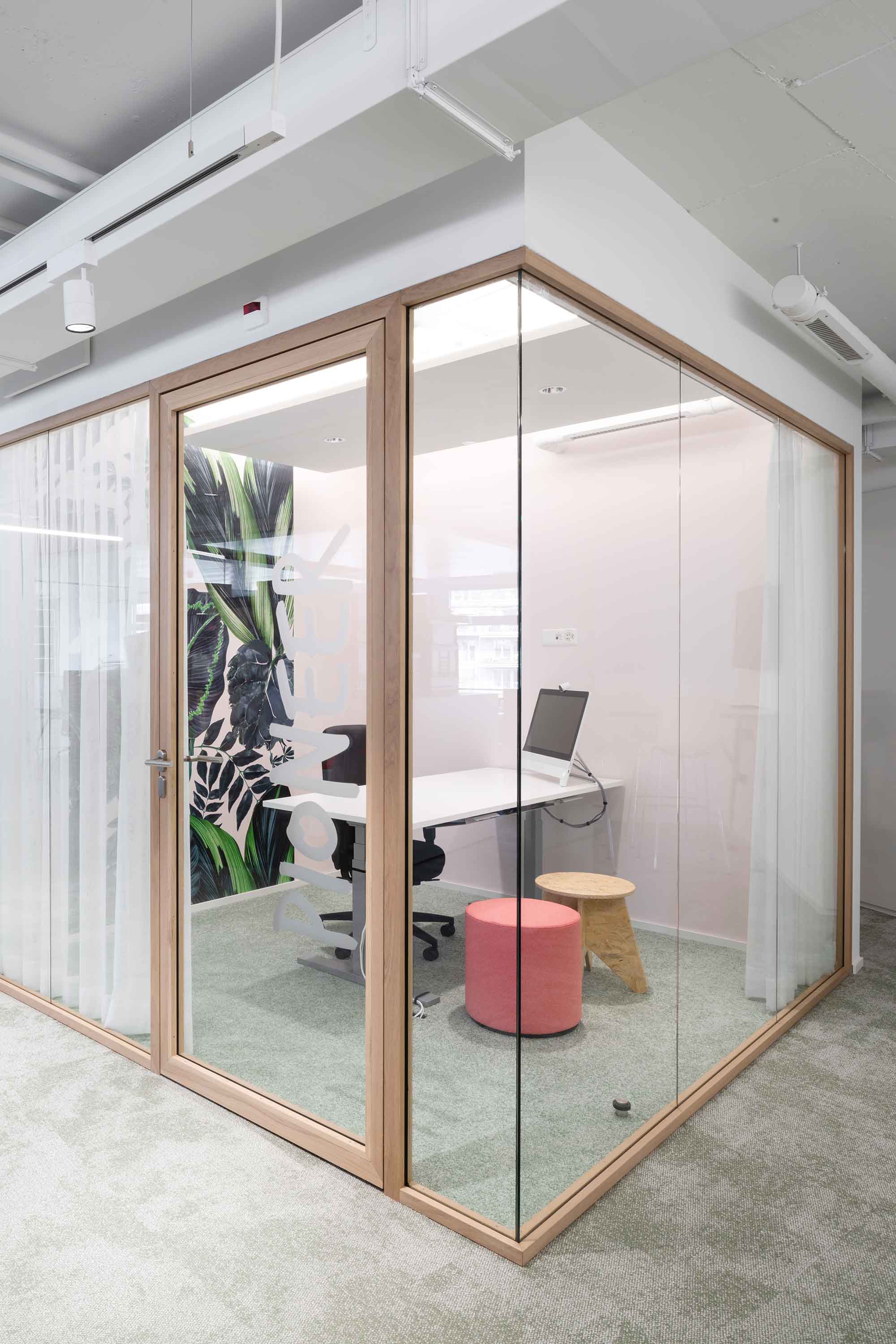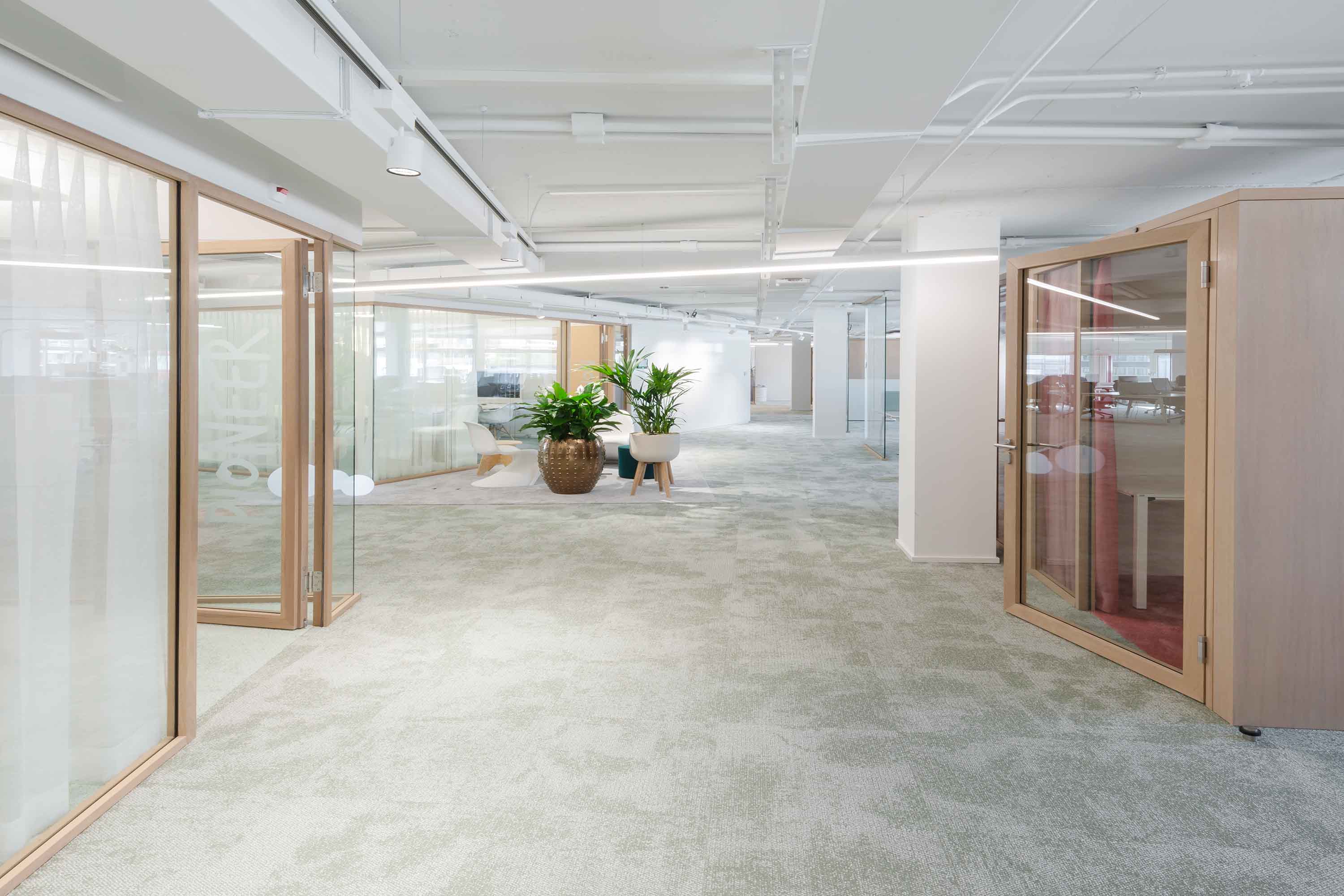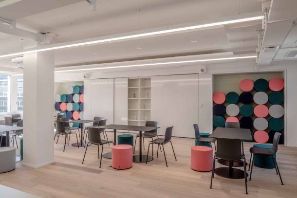 Auf über 1300 m² Bürofläche stehen 80 flexibel nutzbare Arbeitsplätze sowie ein grosses Angebot an Kollaborationsflächen für unterschiedlichste Tätigkeiten zur Verfügung. Neben der Büroeinrichtung entschied sich die Danone AG für Sichtschutz- und Akustikmassnahmen von Trispace.